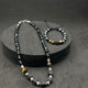 Prodotto in onice nero con sfere occhio di tigre e pietra lavica con rifiniture in acciaio inox , anallergico
